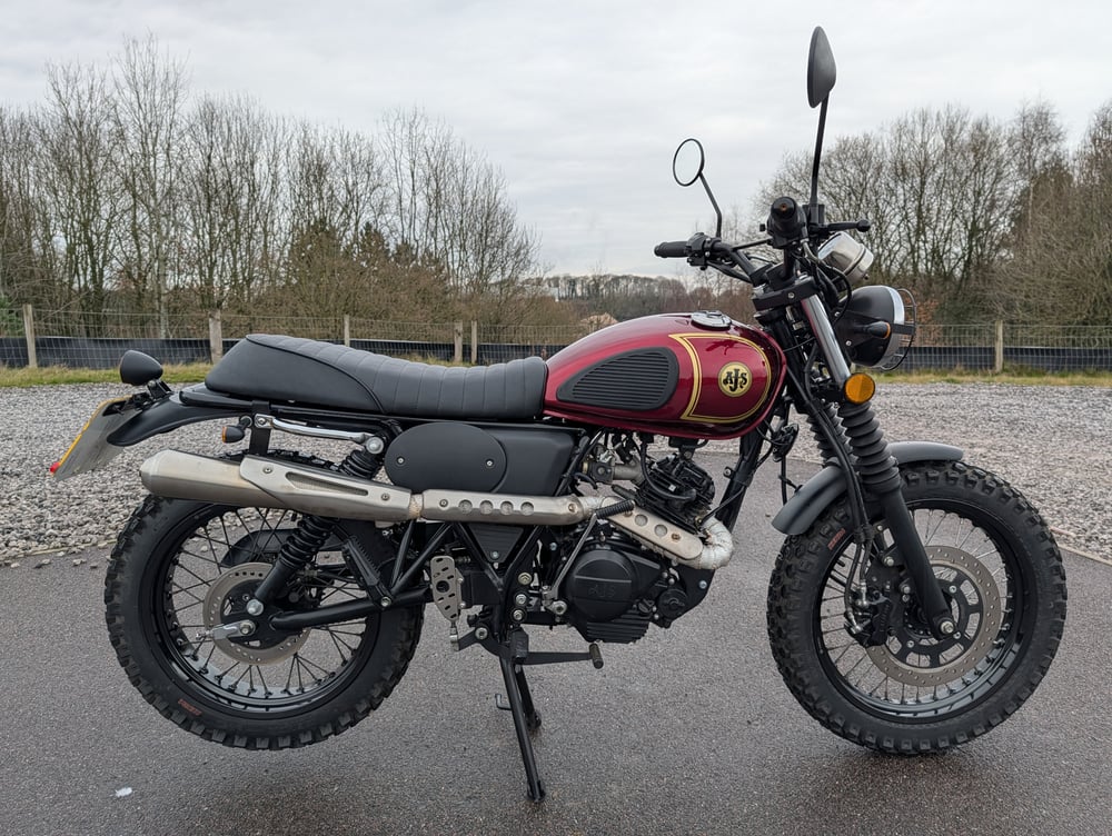 Description: The AJS 71 Desert Scrambler 125 stands out with its retro aesthetics and classic scrambler look in a learner friendly package. Serious looking first bike or everyday commuter with excellent fuel consumption and low running costs. This particular example is in very good condition throughout and is ready to ride. HPI clear with recentreport present. One previous owner and only 5,450 miles from new. Service history (see details below). Comes with 12 months MOT from the date of purchase. Runs and rides perfectly as as shown in the YouTube video link above. Very good Kenda tyres. Fitted with centre stand for easy chain maintenance and adjustments. Overall difficult to get a better looking, more practical, quality learner or commuter with no problems for less money. Priced to sell so be quick!